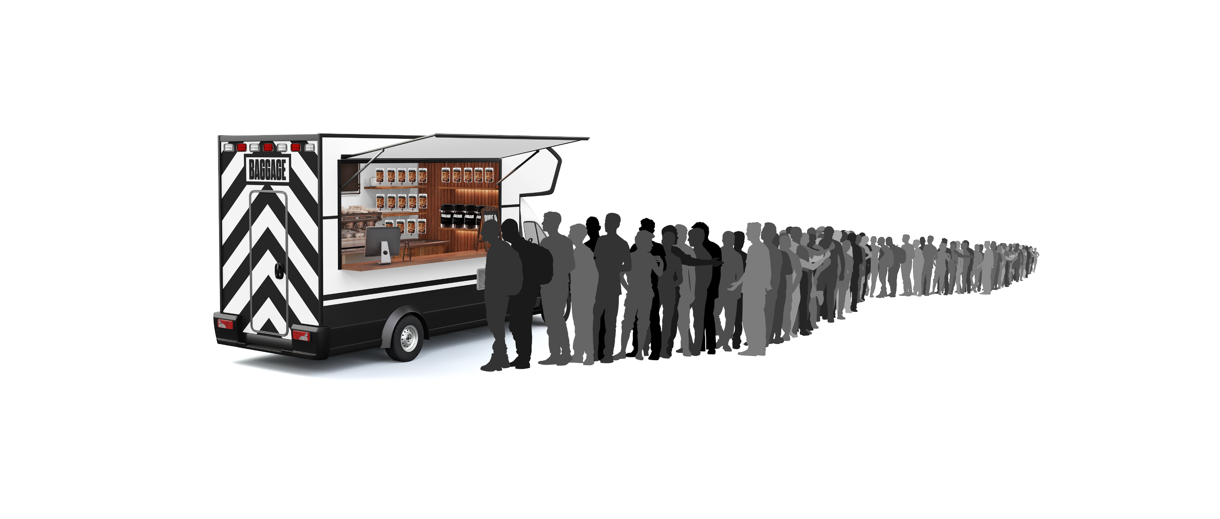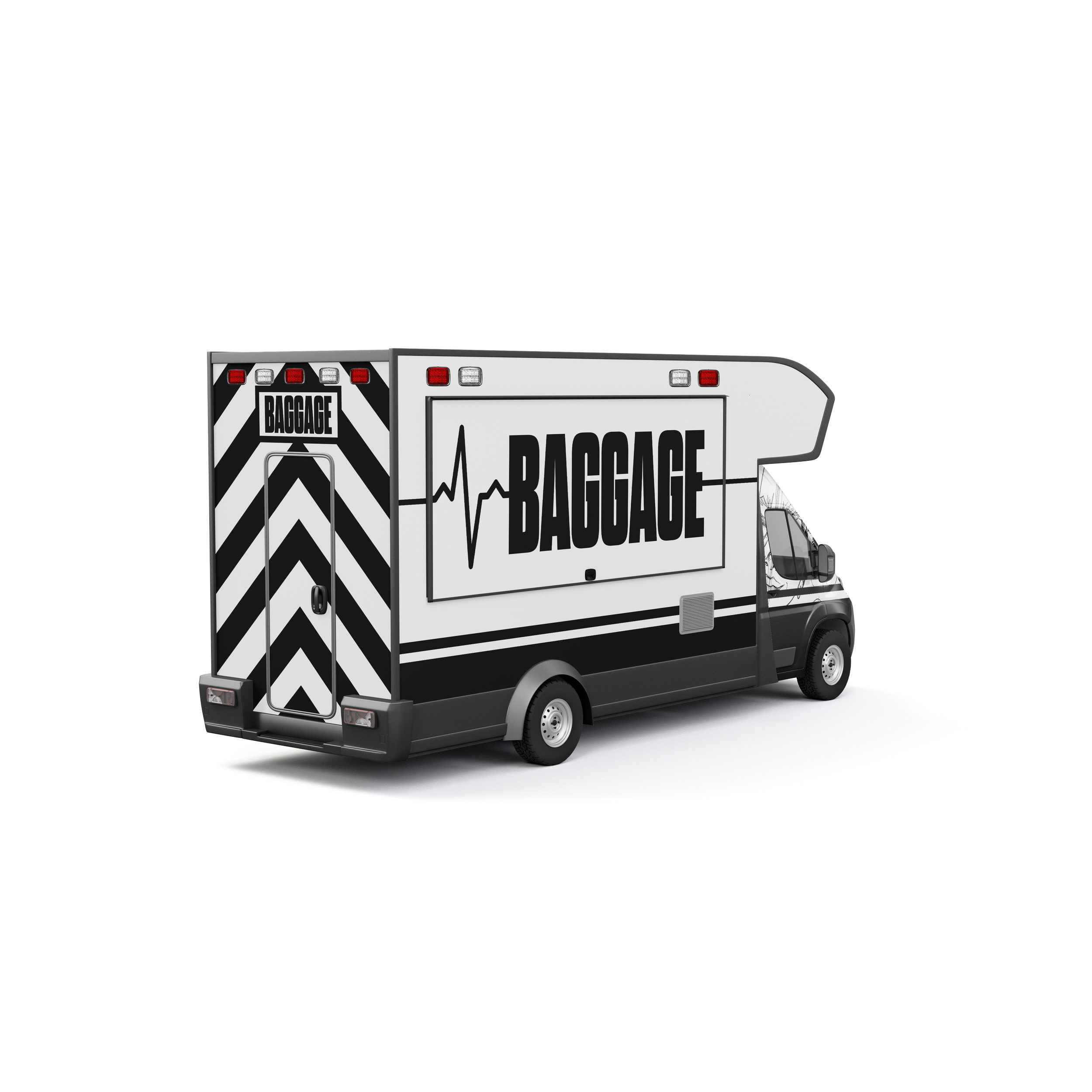 Baggage Coffee recognizes that their customers don’t have the time to enjoy a cup of Joe in the traditional sit down coffee house since they are simply too busy. Knowing this, Baggage Coffee sells their coffee out of a food truck to ensure a swift purchasing process. The food truck resembles an ambulance to further continue commentary on this toxic hustle culture and how we are collectively addicted to coffee. Additionally, when thinking about the experience of buying Baggage Coffee, I wanted to design employee uniforms to resemble medical professionals.